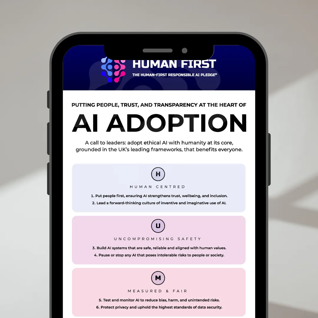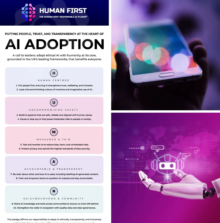 The Human-First Responsible AI Pledge is a call for leaders to adopt AI in a way that is ethical, human-centred, and commercially viable.